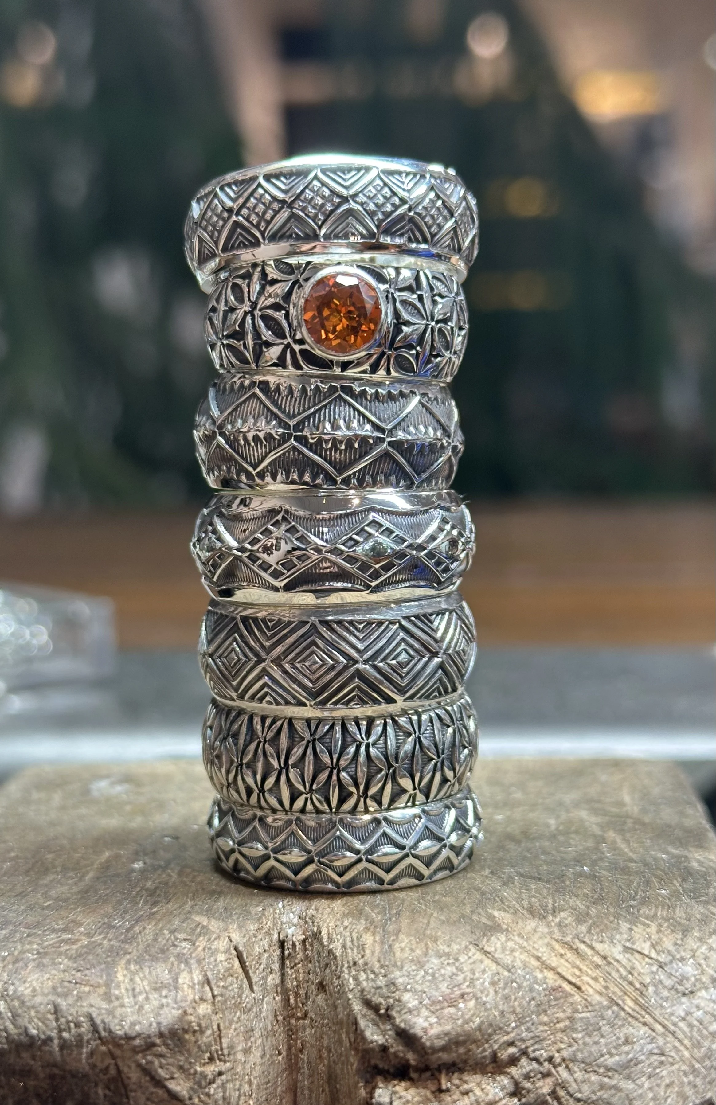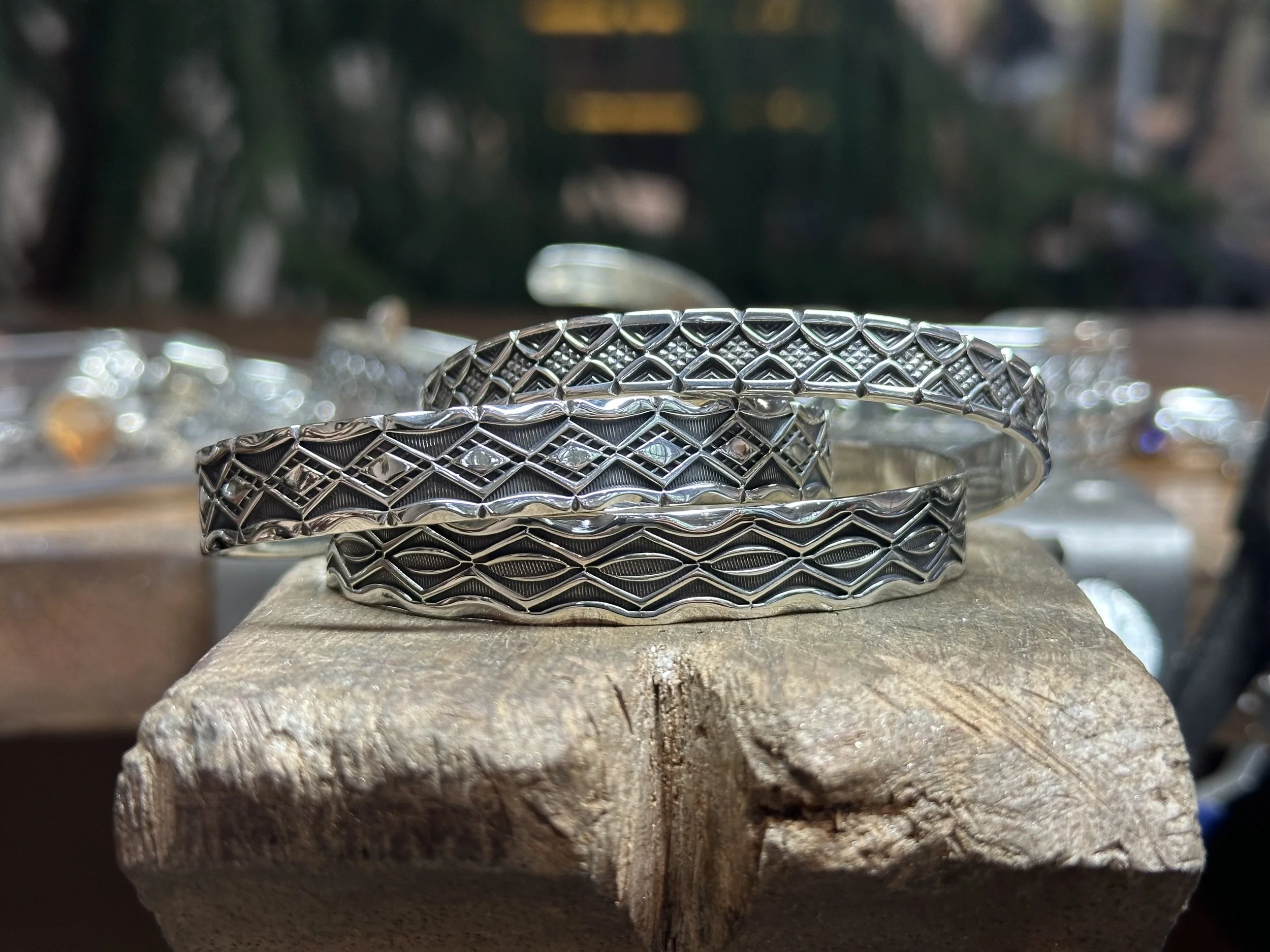This course introduces the art of stamp making and stamping, guiding participants through the creation of their own personalized steel stamps. Students will learn how to design, cut, and harden stamps using traditional techniques and tools. The class also explores different stamping methods on metal, from simple impressions to complex patterns. Each participant will practice applying their stamps to create unique textures and motifs. We will end the workshop by stamping a small bracelet. Students will leave with custom tools and a deeper understanding on how to use them in beautiful pieces of jewellery.